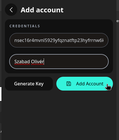 Írjuk be a nevet, klikkeljünk az “Add Account”-ra